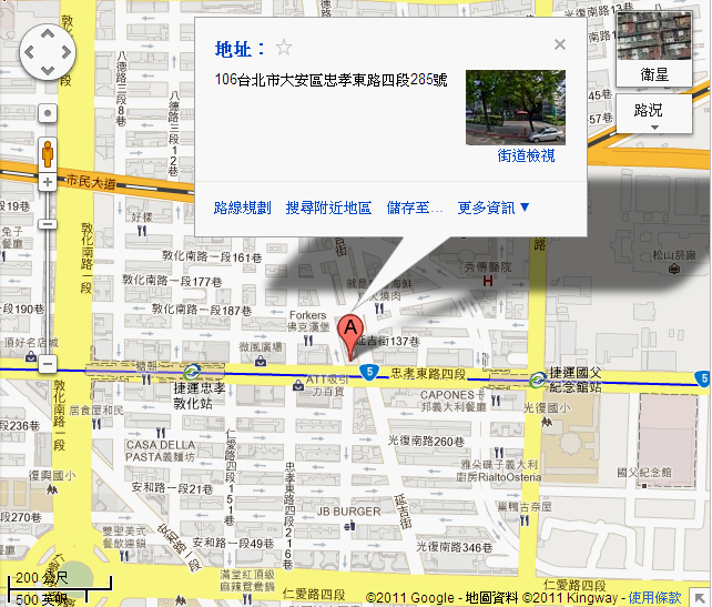 地址: 台北市大安區忠孝東路四段 285號 5 樓